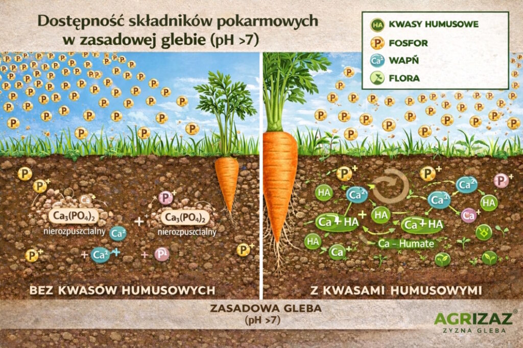 To klasyczny przykład blokady dostępności składników – problemu, który nie wynika z braku nawozu, lecz z warunków glebowych.
