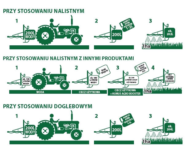 HUMUS AGRO BOOSTER- najbardziej skoncentrowany z linii HUMUS AGRO. Podnosi efektywność wykorzystania składników pokarmowych nawet do 50% przy stosowaniu łącznym z innymi nawozami nalistnymi. Zalecany do stosowania przy każdorazowym oprysku roślin zarówno nawozami mineralnymi, jak i  innymi środkami ochronnymi (herbicydy i pestycydy) w dawce 0,2l na ha (0,2l/200l wody).